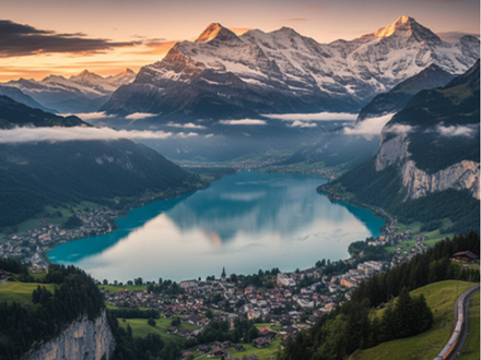 Travel toward the beautiful Jungfrau region. Explore the alpine villages of Interlaken, Lauterbrunnen, or Grindelwald, surrounded by snow-capped peaks and stunning valleys.